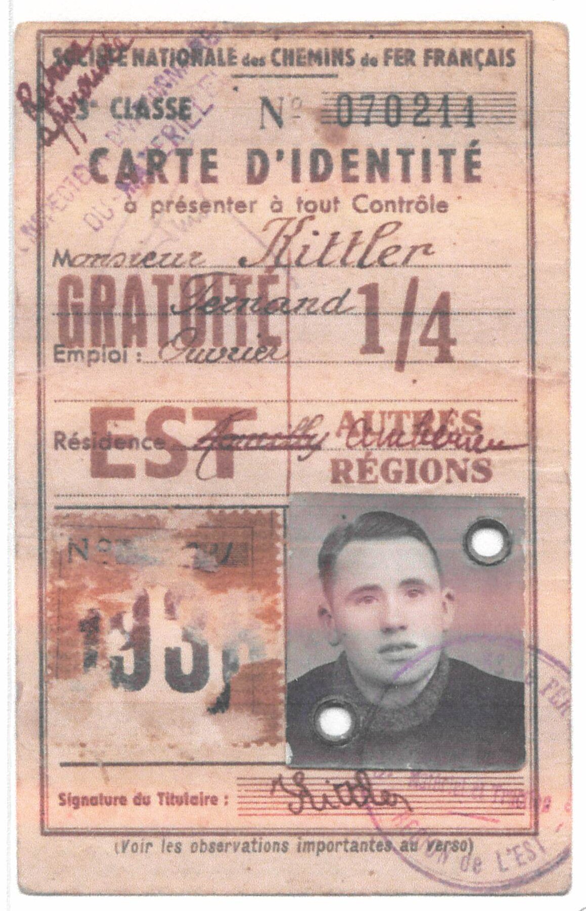 Né le 6 octobre 1915 à Chalindrey (Haute-Marne), dans une famille cheminote de six enfants (quatre garçons et deux filles), orphelin de père, Fernand Kittler fréquente le centre d’apprentissage de Chalindrey, où il obtient son CAP d’ajusteur. Déjà employé des chemins de fer de l’Est et membre des Jeunesses communistes, il effectue son service militaire au 15e Génie de Toul en 1935, puis entre à la SNCF. Rappelé en 1938, il part au Maroc pour exercer diverses fonctions dans les chemins de fer. Il s’y trouve encore lorsque les Allemands envahissent la France.